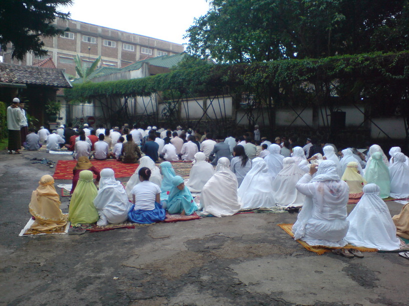 Aku mandi jam enam tepat. Dari spanduk yang ada, aku tahu bahwa shalat id di deket kosan di mulai setengah tujuh. Aku tidak mau ketinggalan shalat id seperti lebaran idul adha kemarin. Habisnya, suara takbir yang ada sangat kecil, meragukan sudah mulai, sudah rame, atau bagaimana. Sistem sound yang dibawa ke lapangan Tizi kurang baik sepertinya. Apalagi kebiasaan di Metro mulai shalat id sekitar jam 7.30. Entah bandungnya atau dewan masjid RW sini yang bertradisi Shinkansen gini. Masjid An-Nur yang deket kosan sih memang masjid Shinkansen, jarak azan dan komat seruas jari. Akhirnya aku dan sekumpulan orang padang waktu itu berlari dan mencari angkot untuk ke kampus. Sesampainya di lokasi shalat di lapangan basket ITB, jamaah sudah takbir untuk ruku’.