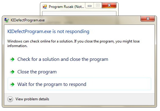 Sekarang mari kita coba masukkan string password yang cukup panjang. Yang terjadi adalah program tiba-tiba freeze. Jika kita apa-apakan malah muncul dialog Don’t Send yang terkenal itu.