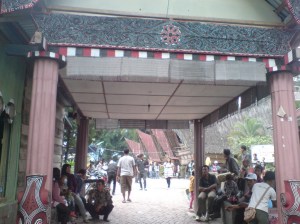 Ketika sampai di Samosir, di desa kecil Tomok lebih tepatnya, Anda akan mendapati kawasan pasar yang cukup luas. Pasar ini menjual berbagai cinderamata seperti kaos tulis, pakaian adat Sumut, gantungan kunci, patung khas, alat musik, dsb. Ya, pasar ini sangat luas dan sangat ramai ketika saya mengunjunginya pada tahun baru.