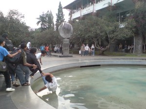 I want to post a photo about having fun with friend. This picture below is a photo of my friends play a prank to the other. Some time ago, we have tradition to throw off a friend to the campus pond called Sinking Indonesia “Indonesia Tenggelam” on his birthday. Everyone catch the birthday person and bring him to the center of campus and swing him off the pond. It’s so fun but so frightening (especially if your birthday is near) on that time. Now, it is forbidden.
