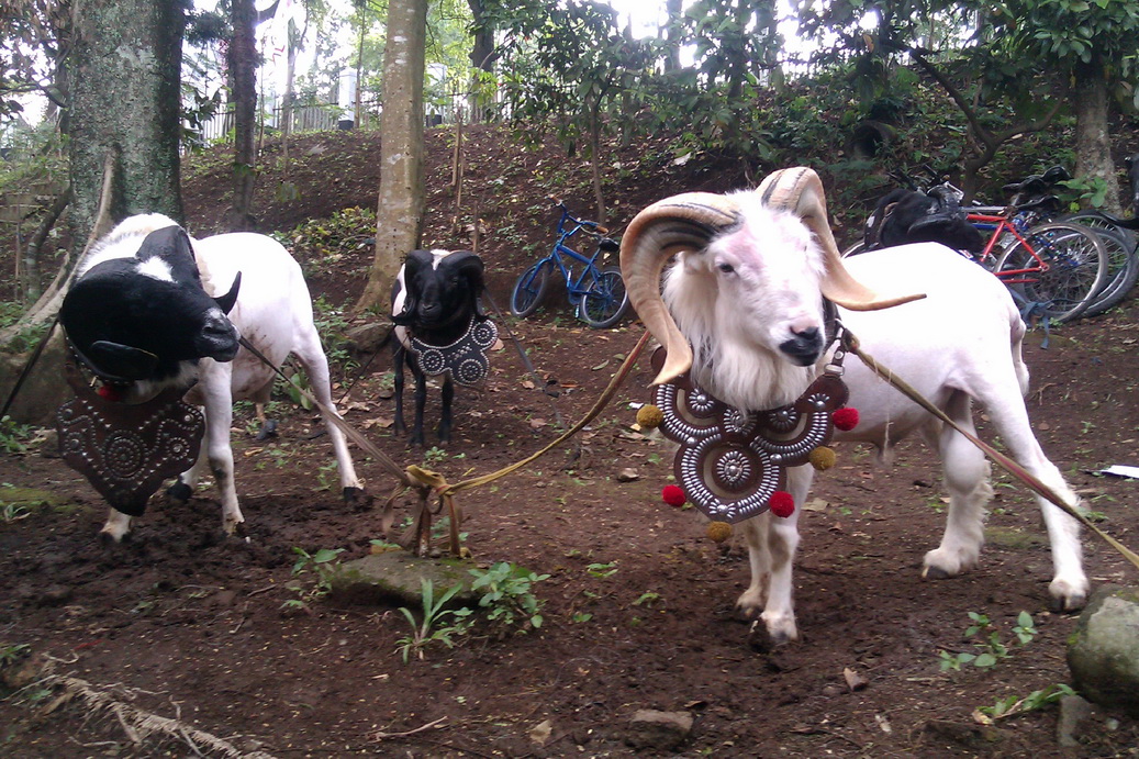 I also want to post a photo about animals having fun, sitting, sleeping, or fighting together. Searching in my photo database, I just found this photo below. In the photo, you can see goats in my campus. Every month in my campus backyard forest, Babakan Siliwangi (yeah, we have a forest are behind the campus), we have goat fighting festival. Farmer and breeder from all over Bandung comes to promote their husbandry and good quality goat, by fighting.