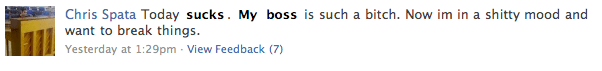 Pada masa kini mungkin saja status tersebut tidak menimbulkan masalah. Akan tetapi, orang di atas tidak mempertimbangkan majikan masa depan yang mungkin memperkerjakannya. Ingin jadi polisi misalnya dan calon bos menemukan status di atas, bagaimana jadinya?