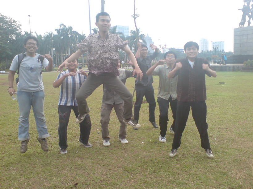 This is I and my friends when we take a tour to National Monument Indonesia. They are my upperclassmen from my college. I am the person floating in front of the picture.