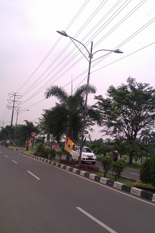 Karena masih ada satu teman dari Cimahi yang belum datang, kami pun menunggu di trotoar persimpangan. Walaupun semua memakai batik, kami tetap berjemur dan duduk-duduk di samping jalan tersebut. Sambil rehat menenangkan CPU Usage pikiran saya yang sebagian sudah disita pusing, saya pun mengamati keadaan sekitar sambil berfoto ria. ![]()