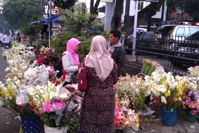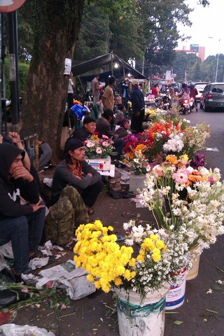 Dua hari sebelum lebaran, pinggir Jalan H. Juanda atau yang lebih dikenal dengan Jalan Dago sudah dipenuhi para penjual bunga. Tidak seperti dua tahun lalu, bunga-bunga yang meramaikan simpang dago kali ini berlangsung dua hari. Mungkin karena waktu lebaran dan liburan sangat dekat dengan waktu masuknya perkuliahan dan liburan tengah tahun. Kali ini pula, langit dapat bekerja sama dengan tidak mengeluarkan cairan kesuburannya. Akan tetapi, ini berarti foto-foto kembang yang akan saya ambil tidak punya bintik-bintik air dan efek segar di kelopak bunganya,