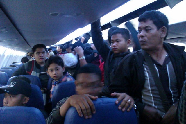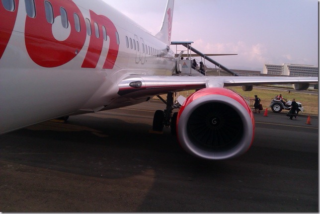 Pesawat saya lepas landas pukul 16.50 dari Bandara Husein Sastranegara Bandung, menurut jadwal yang saya pesan. Katanya sih, penumpang diharapkan check in 90 menit sebelum keberangkatan, 45 menit setelah itu check in akan ditutup. Menurut perhitungan saya, berangkat lepas ashar (waktu ashar waktu itu 15.20) terlalu mepet. Terpaksa saya berangkat pukul tiga lewat dikit walaupun saya percaya tidak akan ditinggal walaupun saya sampai pukul 16.30 sekalipun. Tahun lalu di Bandara Soekarno Hatta saya sampai dengan waktu mepet seperti itu (setengah jam itu mepet, kurang dari itu bunuh diri namanya).