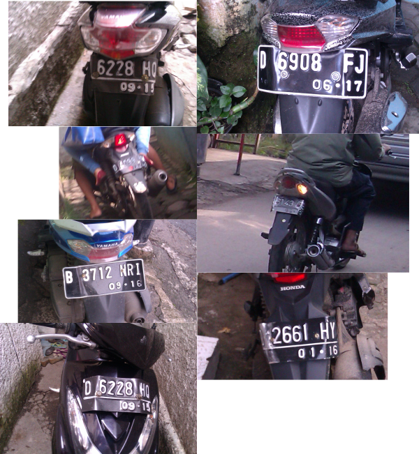 Dan juga sedikit koleksi foto plat motor di sekitar kosan saya, yang saya ambil sambil jalan ke warung mie. Lihat foto bawah, buat empunya maaf ya plat motornya difoto tanpa izin.