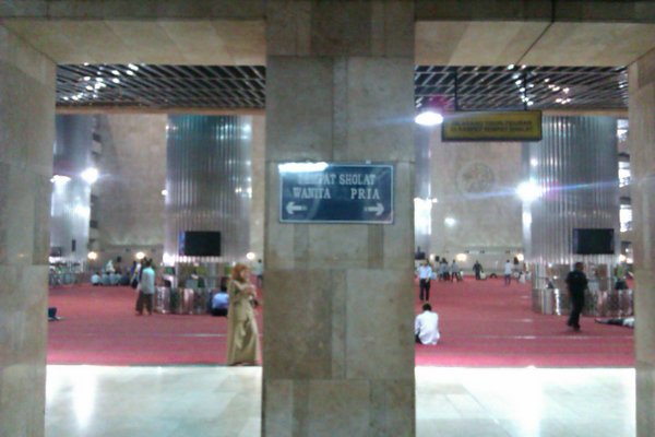 Oh ya, masih ingat tentang pilar penopang kubah masjid yg ada dua belas itu? Kata Pak Setiawan biaya pengelapannya mencapai Rp.40M (huruf M dalam bahasa indonesia ya, milyar bukan million). Katanya obatnya harus impor. Dipakai untuk mengelap mengkilat pilar super tinggi itu, kubah, lantai, dan dinding seluruh kompleks istiqlal yg tidak menyediakan ruang cat sedikitpun (seluruhnya marmer). Wah, mantab ya. Saya tidak tahu keakuratan cerita beliau ini, belum nemu di google soalnya.