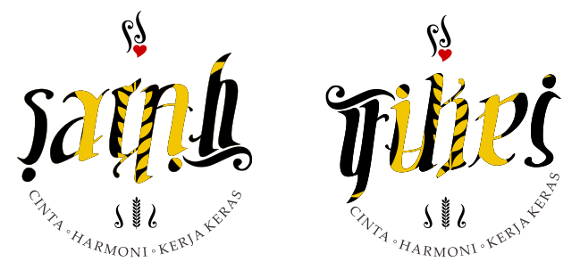Filosofinya dari disain yang tertera di objek tersebut, seperti tampak pada ilustrasi di samping, adalah bahwa kedua ini tidak dapat dan tidak akan dapat dipisahkan. Sebagaimana ambigram yg membentuk disain disamping dan di atas, dua nama yang terukir tak dapat dilepas tanpa merusak keutuhan bentuk. Kedua nama pun saling serasi membentuk sebuah karya yang sinergi dan saling mendukung, menyokong dari dua arah.