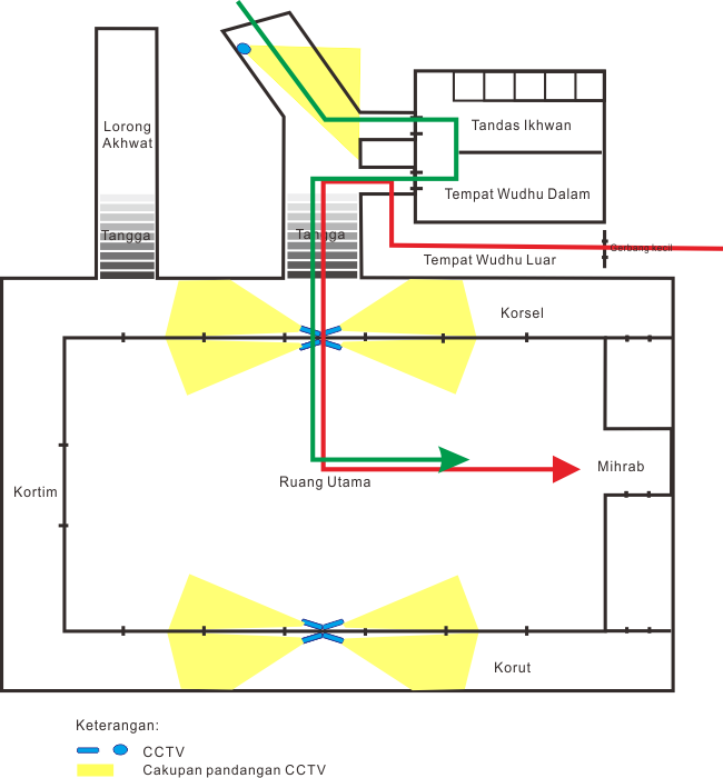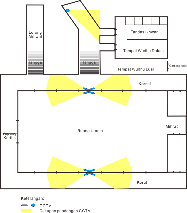 Oke, ini denah salman dan letak CCTV tersebut. Yang baru adalah yg panjang di sekitar ruang utama.