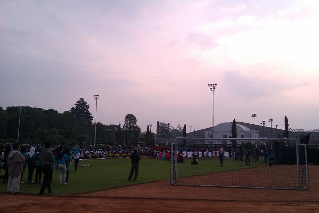 Update [09.15]: Ternyata ada pengondisian shalat di lapangan, dibantu oleh GAMAIS. Tapi memang agak telat sih shalatnya pukul 18.40 setelah lobying dengan panitia (sbg info: isya pukul 19.03). Hal ini berdasarkan pernyataan dari Dayu Wiyati Purnaningtyas, anak gamais juga. Karena agak telat makanya saya juga nggak liat (persiapannya disumputin dimana ya). Fix aman berarti. Alhamdulillah…