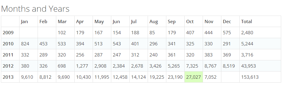 Oh ya, bahkan itu lebih diperparah dengan distribusi jumlah pos yang berat hanya di satu setengah tahun belakang. Berarti sisa tahunnya gak ngapa-ngapain ya… Ah. Diriku tercampakkan.
