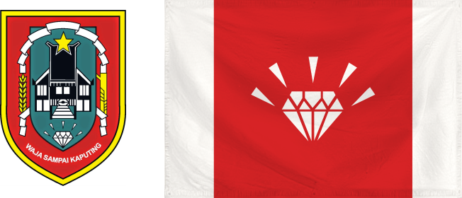 Lanjut ke selatan Pulau Kalimantan, provinsi Kalimantan Selatan memiliki lambang dan skema warna yang sedikit berbeda dari provinsi lainnya. Nggak lagi hijau. Dan Tidak ada tameng. Ukiran. Mandau. Keris. Sumpit. Yang ada adalah rumah adat kalimantan selatan dan berlian!