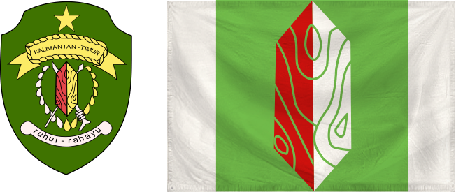 Masih dengan kalimantan, tentu saja masih dengan sang perisai alias talawang atau talabang. Kali ini disertai dengan butiran damar dan sumpit menggantikan keris. Arti lambang ada di Situs Pemprov Kaltim.