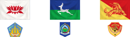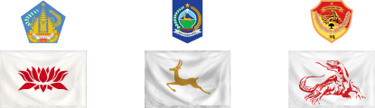 Dibuat bendera pun langsung saja. Kancil sebagai logo utama. Biru melambangkan kesetiaan. Hijau melambangkan kemakmuran. Putih melambangkan keluhuran. Dan kuning pada mata rusa melambangkan kejayaan.