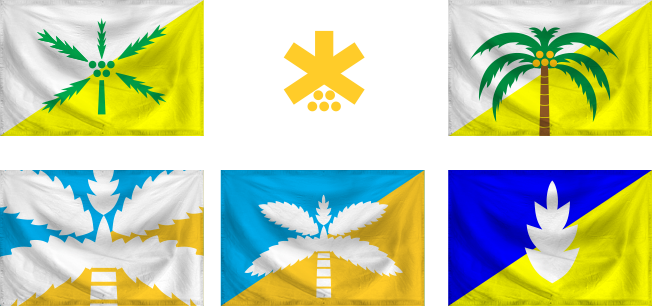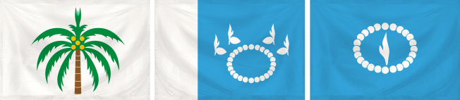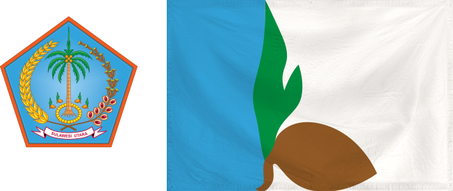Okey, bagaimana menyederhanakannya. Kalau pohon kelapa sulit, kita sudah coba di Provinsi Sulteng tadi. Kalau mau coba lagi bisa cek di bawah, alternatif dari bendera Sulut. Yang paling mending adalah memilih si tunas kelapa. Bentuk dan ukuran sedikit saya sesuaikan supaya memenuhi bendera dan memisahkan antara biru dan putih.