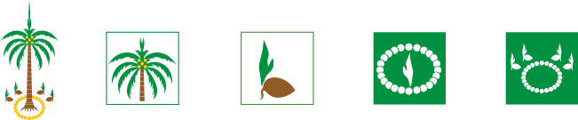 Isi dalam Coat of Arms, standar. Bintang. Pita. Padi kapas. Yang agak berbeda cuma si pohon kelapa saja. Ini yang membuat saya sangat kesulitan menyederhanakan si lambang. Karena, nggak ada materi sama sekali…