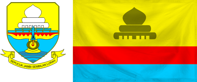 Memasuki daerah melayu, porsi warna kuning di bendera makin banyak. Bendera Jambi yang saya buat ini memakai skema warna dari lambang resminya. Logo yang saya ambil adalah bentuk masjid dari lambang provinsi. Masjid ini memiliki 6 pintu, melambangkan tanggal lahir provinsi 6 Januari 1957.
