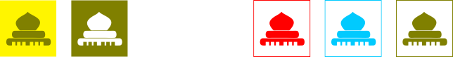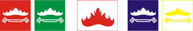 Lambang persegi yang dipakai untuk tempat-tempat lain selain bendera bisa sesederhana di atas. Berupa perisai berwarna jingga. Atau kalau mau, pakai gambar orang tani atau ikan kayak di logo tengah di atas, bisa juga walau aneh.