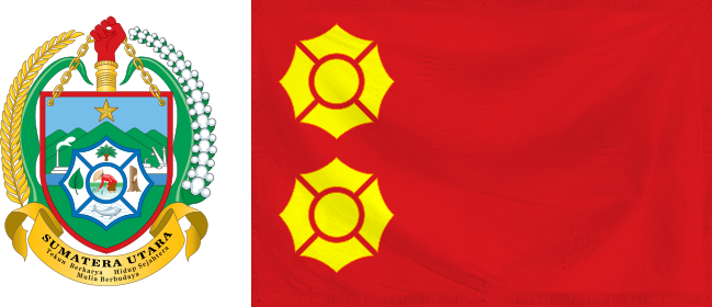 Saya akhirnya merujuk ke bendera-bendera kerajaan masa lalu yang ada di wilayah Sumut. Salah satunya Kesultanan Deli. Benderanya warna kuning dengan dua bunga atau bintang horizontal di sisi kiri bendera. Warna uning tentu saja karena kesultanan ini adalah kesultanan melayu. Dapat dilihat di wikipedia atau di sisi paling kiri pada deretan logo di bawah.