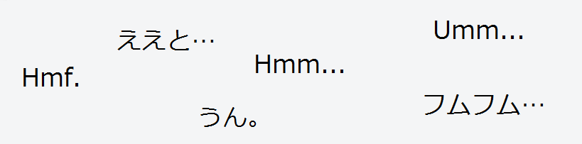 Ada perbedaan arti Hmm dalam bahasa Indonesia dan Jepang. Atau setidaknya, interpretasi dari bunyinya. Juga ada perbedaan antara Hmm, Hmf, Eetoo, dan Fumufumu.